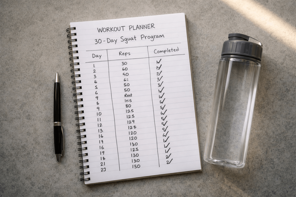 Program squat 30 hari yang terstruktur adalah pendekatan progresif yang membangun kekuatan dan kapasitas kardiovaskular secara bersamaan — dengan prinsip progressive overload tanpa memerlukan peralatan apapun (National Strength and Conditioning Association, 2025).